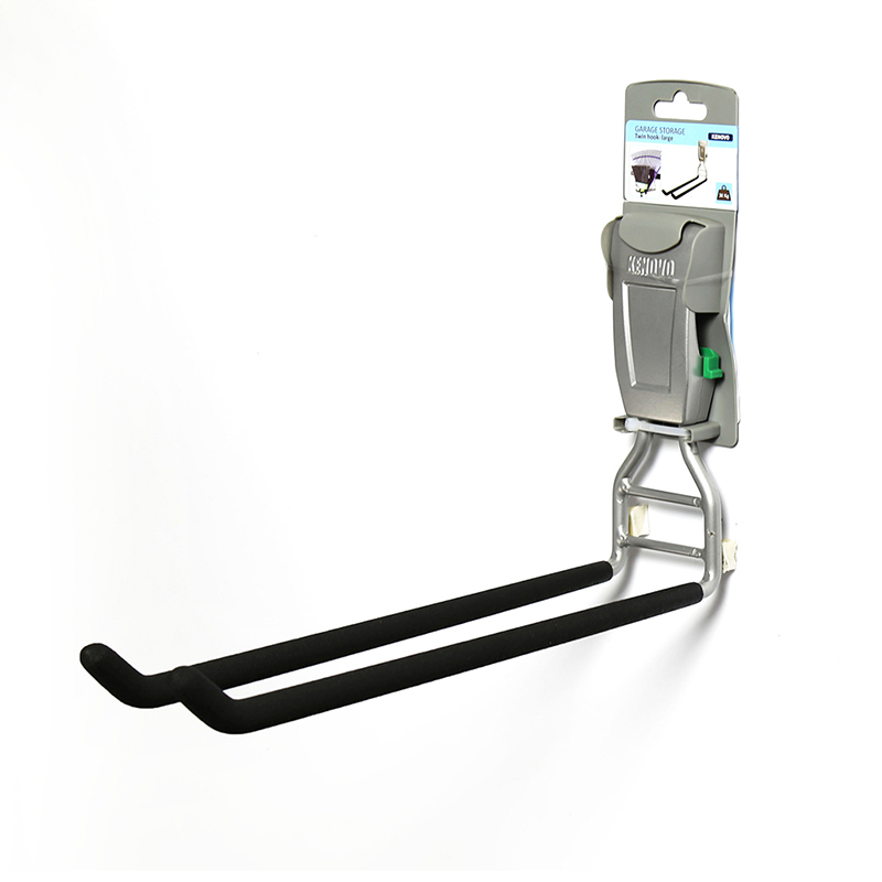 - 1 Twin Long Hook: Un gancho doble largo diseñado específicamente para colgar herramientas y equipos de gran tamaño. Su diseño robusto y los puntos de contacto recubiertos de goma aseguran un agarre firme y protección contra rayaduras. Capaz de soportar hasta 20 kilogramos, este gancho es perfecto para organizar eficientemente tus herramientas más pesadas.